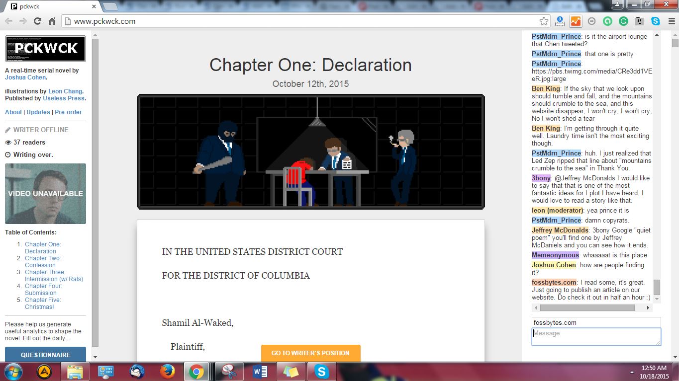 The interface of the website looked like a Google Docs web page, and the most compelling part was, users could comment and criticize him if they didn’t like his writing or had a suggestion for him, all anonymously in the chat section (see our comment in the screenshot :P).