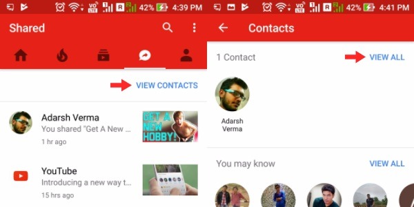 Tap View Contacts > View All to displays a list of your YouTube connections. These are the ones whose email is registered in your Google Contacts.