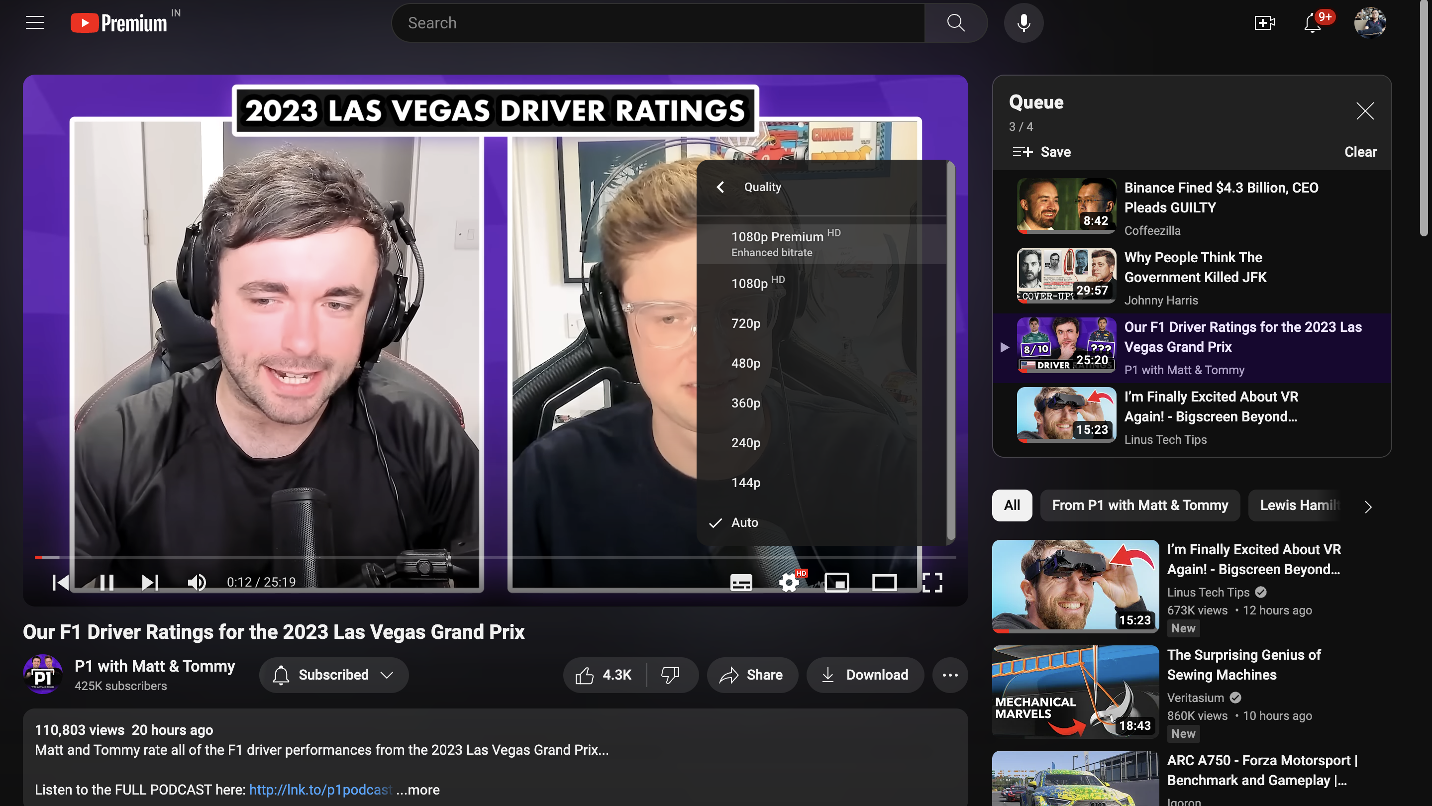 In addition to the general features, YT Premium also adds a few quality-of-life features as well. Firstly, it introduces the ‘1080p premium’ video quality tier, offering improved playback bitrate. Secondly, the platform offers video queuing, which enables users to curate a video queue, add new ones, and rearrange existing ones at their convenience.